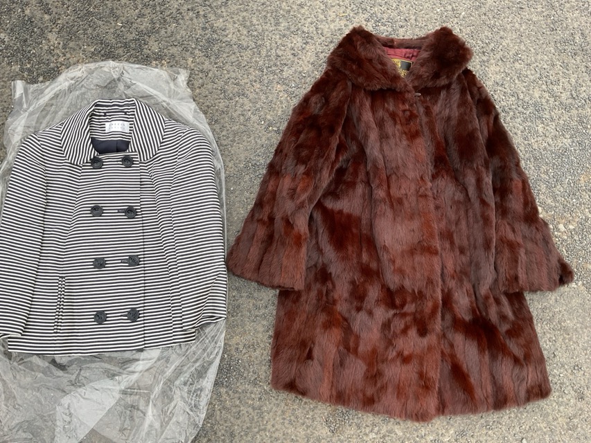 A mink fur jacket/coat with wide collar having Jenners label; and a striped double breasted jacket by Précis Petite. (2)