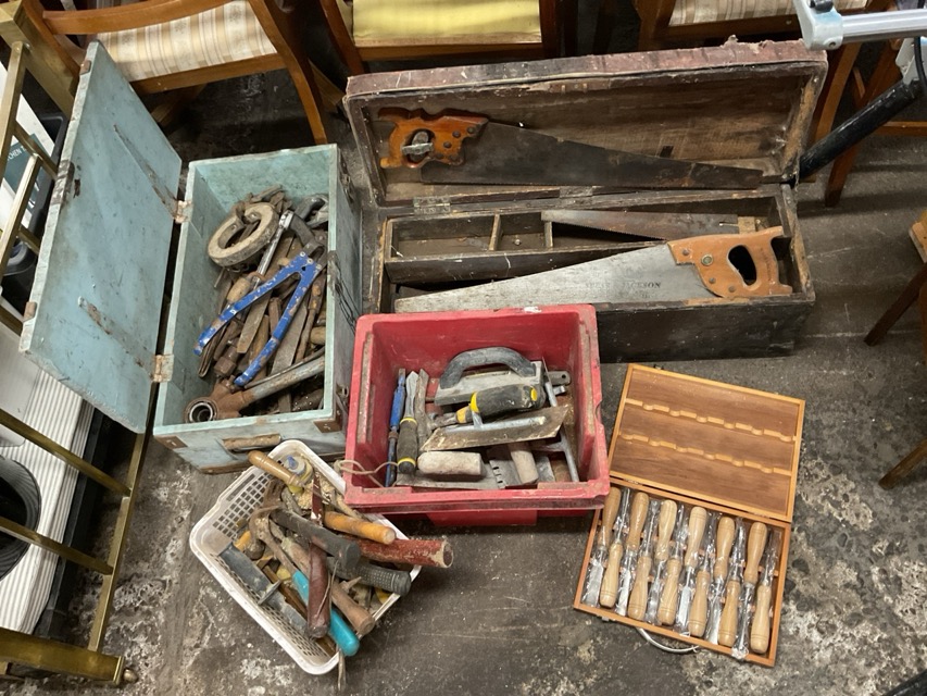 Miscellaneous tools - saws, hammers, chisels, tool boxes, screwdrivers, cement layers, hand drills, clippers, planes, etc. (A lot)