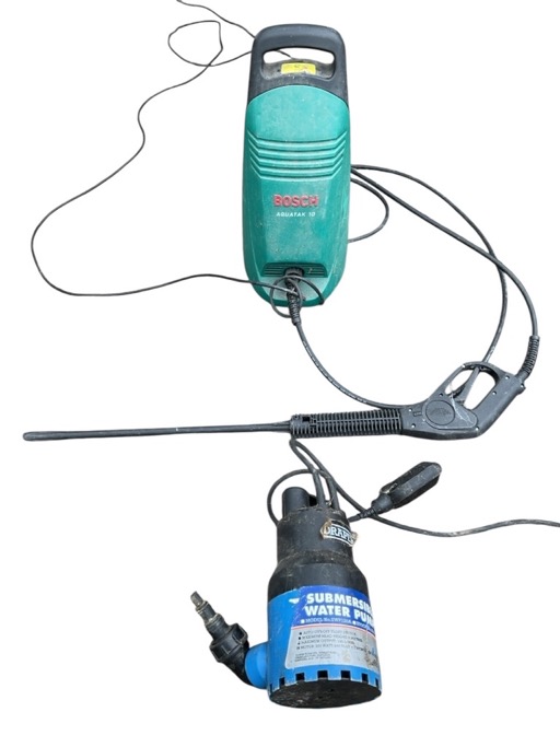 A Bosh electric pressure washer - Aquatak 10; and a Draper electrical submersible water pump. (A/F) (2)