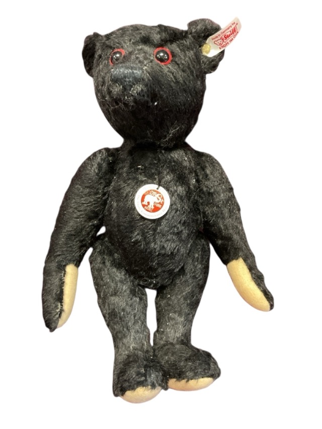 A Steiff Titanic Commemorative Bear, the black mohair body with hump-back, having functioning growler, jointed limbs, felt pads, etc. (13in)