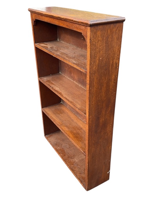 An Edwardian oak bookcase with rectangular moulded top above four open shelves. (24in x 7in x 36in)