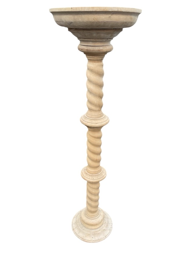 A hardwood jardiniere stand with tiered twisted turned column supporting a platform, above circular moulded base. (40in)