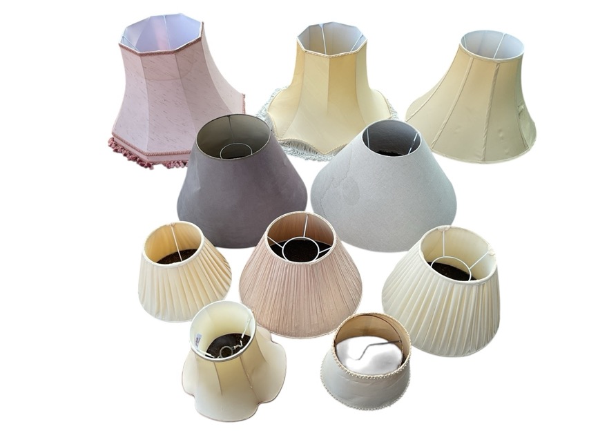 Ten miscellaneous standard and table-lampshades, - various sizes, pleated, silk, card, linen, etc. (10)