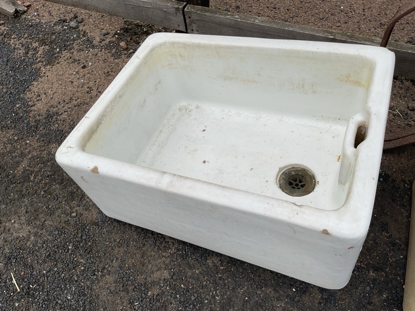 A rectangular glazed belfast sink with integral overflow. (24.5in x 18.5in x 10.5in)