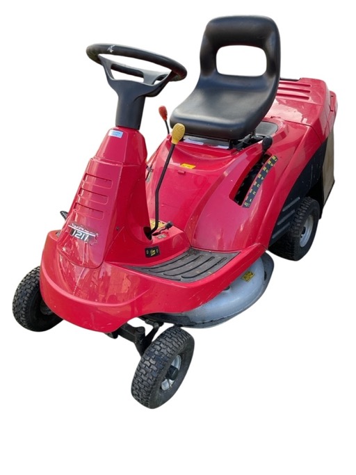 A Honda ride-on garden mower - model HF1211 from 2004, complete with grassbox, charger, operators manual, etc.