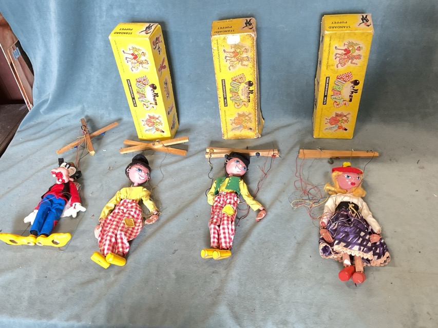 Four Pelham marionette puppets - unboxed Disney Goofy, two boxed Dutch Boys, and a boxed Swiss Mitzi character. (4)