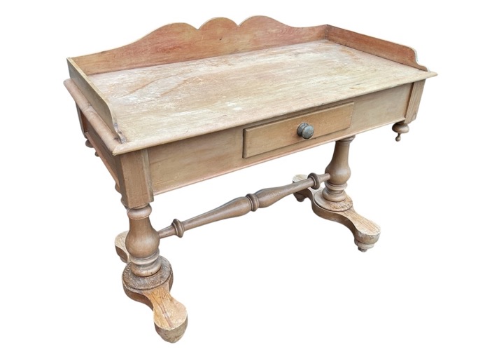 A Victorian pine washstand with shaped upstand above rectangular top having knobbed frieze drawer, raised on bulbous turned columns on platforms with turned feet. (41.75in x 20.5in x 35in)
