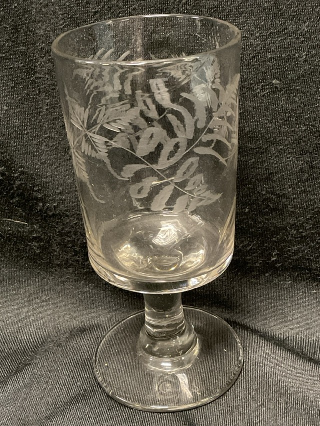 A nineteenth century cylindrical ale glass hand engraved with fern foliage on waisted column above thick moulded foot. (6in)