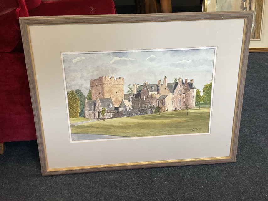 Charles Adams, watercolour, Drum Castle - Banchory, Scotland, signed, dated, mounted and framed. (21.5in x 13.5in)