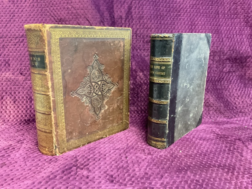 A Victorian Browns Self Interpreting Bible published by Blackie & Son with elaborate gilt tooled leather binding and gilt edges; an The Life of Our Lord and Saviour Jesus Christ by Rev. John Fleetwood, quarter leather bound with gilt tooled spine, each with numerous engraved illustrations. (2)