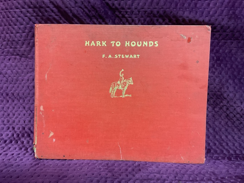 A first edition of Hark to Hounds, written and illustrated by FA Stewart, with numerous black and white and coloured illustrations, published by Collins - London 1937.