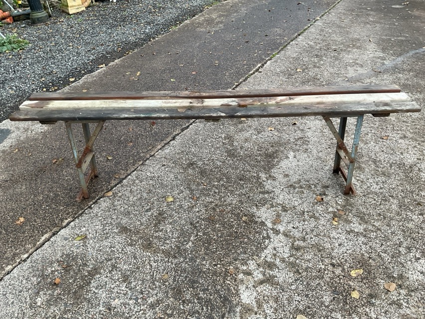 A rectangular folding garden bench with tree batten to seat on angleiron supports. (70.5in)