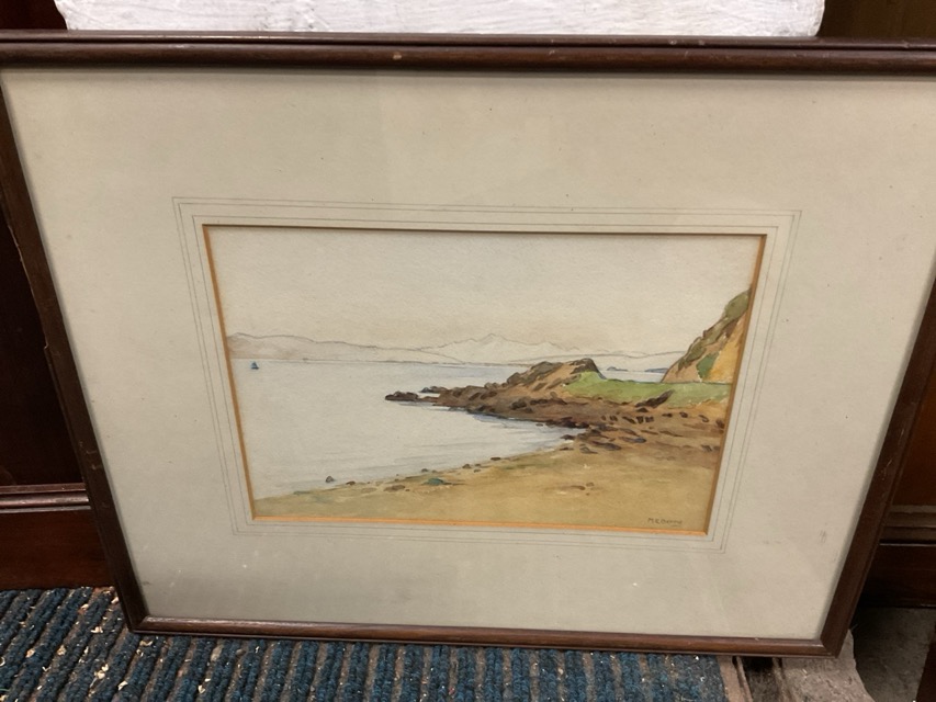 ME Berry, pencil & watercolour, a pair, costal scenes, signed, mounted & framed. (10in x 7in) (2)