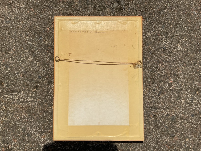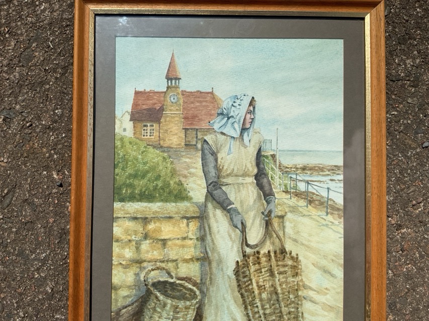 Alan Kemp, watercolour, lady on quayside with baskets, signed, titled to verso Waiting for the Boats - Cullercoats, mounted & framed. (9.25in x 14in)