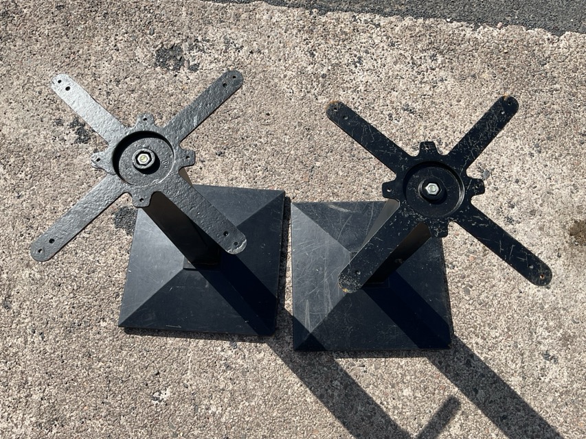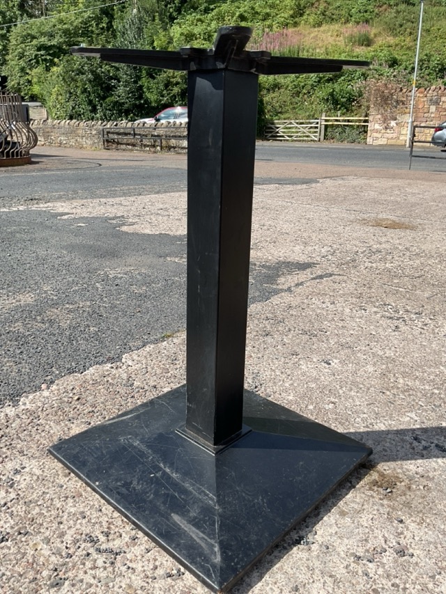 A pair of painted metal table bases with square columns on square chamfered plinths. (28.5in) (2)