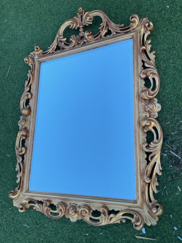 A Georgian style carved giltwood mirror with pierced acanthus scrolled mounts to moulded rectangular frame, with confirming scrolled Chippendale style crest - the plate bevelled. (31in x 44in ext)