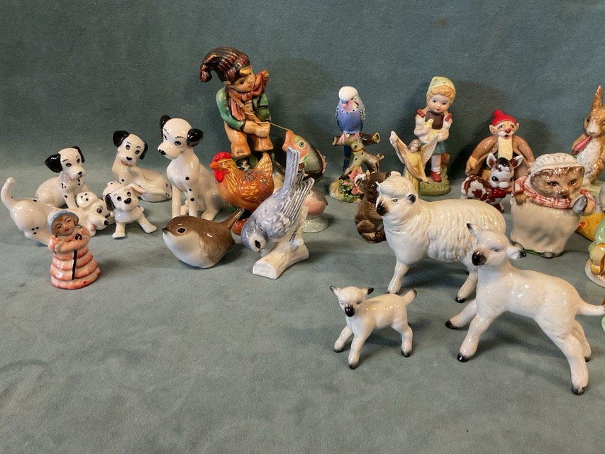 Miscellaneous figurines - Beswick Beatrix Potter figures, porcelain dalmations, German, Beswick ewe & lambs, Bunnykins, Royal Copenhagen, etc. (32)