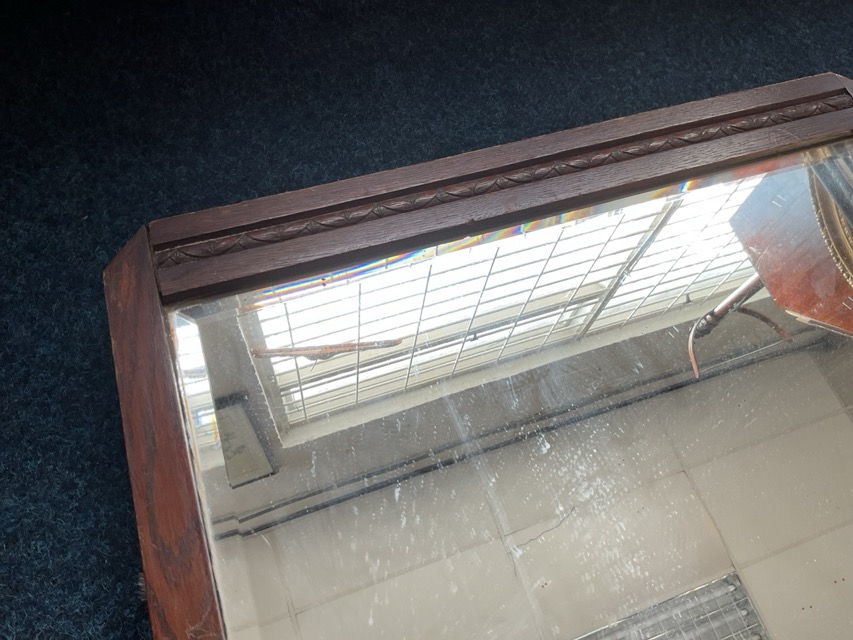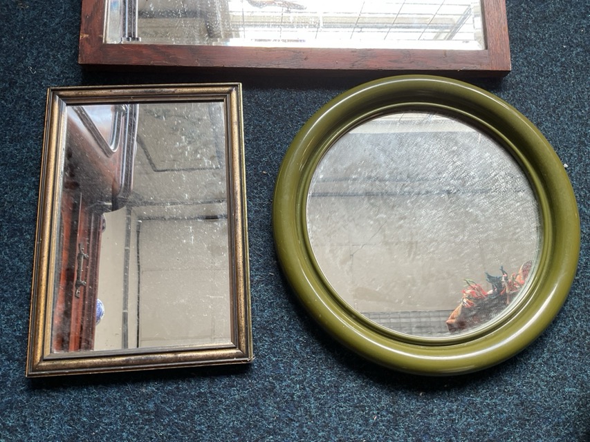 Three miscellaneous mirrors - rectangular in moulded gilt frame, circular in modern frame, and bevelled plate in carved oak frame. (3)