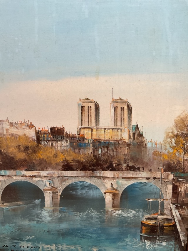 M Yazaki, oil on canvas, Paris cityscape with River Seine, signed, mounted & framed. (12.5in x 15.75in)