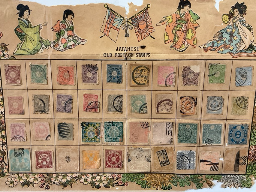 A collection of 17 early C20th Japanese postcard photographs, mostly kabuki actors, comedy, etc.; and miscellaneous late C19th Japanese sen, rin & yen Imperial Japanese Postage stamps. (57)