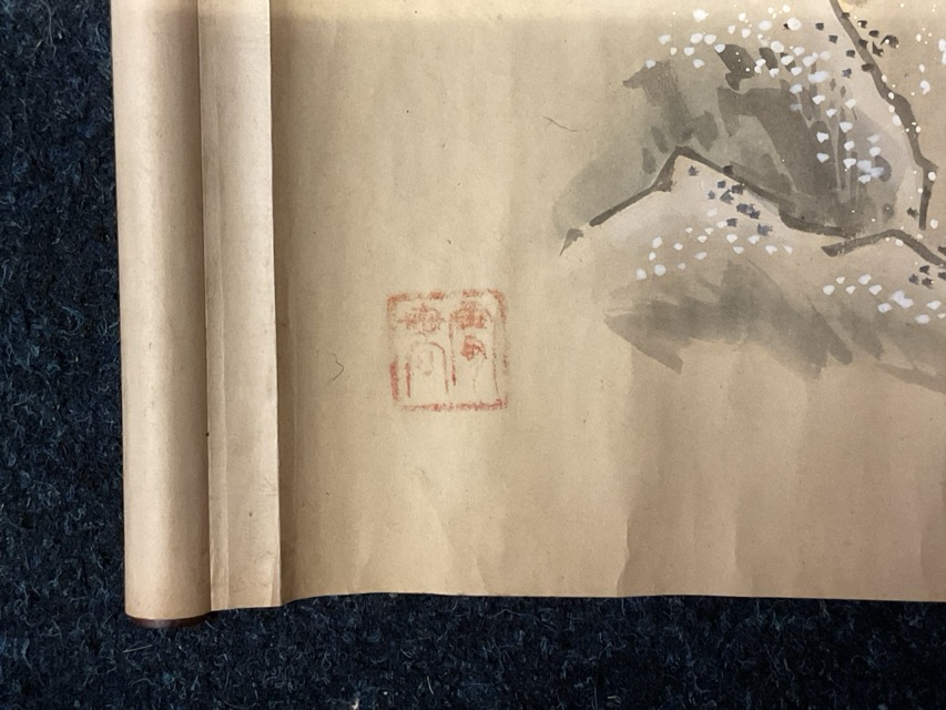 A Chinese ink & watercolour handscroll, depicting scenes of children playing in various seasons - catching butterflies, cockfighting, snowball fights, swimming, hobby-horse, etc., with chop seal to end. (261.5in x 11.5in)