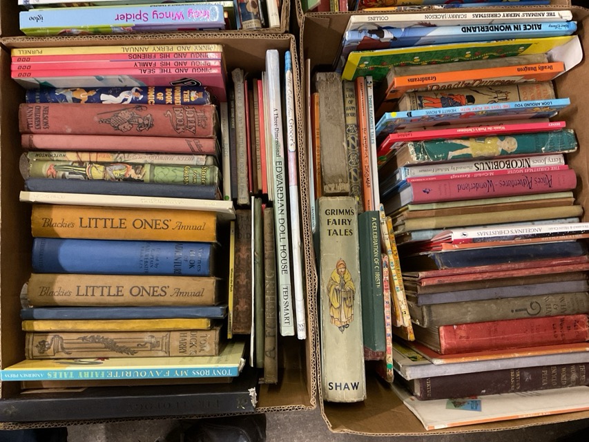 A quantity of childrens books - classics, some Edwardian, stories, dolls & toys, pop-up books, contemporary volumes, annuals, comics, ladybirds, etc. (180+)