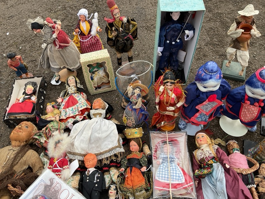 A collection of costume dolls - some boxed, composition, terracotta, cloth, various countries including boxed Spanish and Maltese, German rubber by Goebel, Indian cloth, Chinese porcelain, Brazilian, wool, Greek soldiers, a Peggy Nisbett piper, etc. (80)