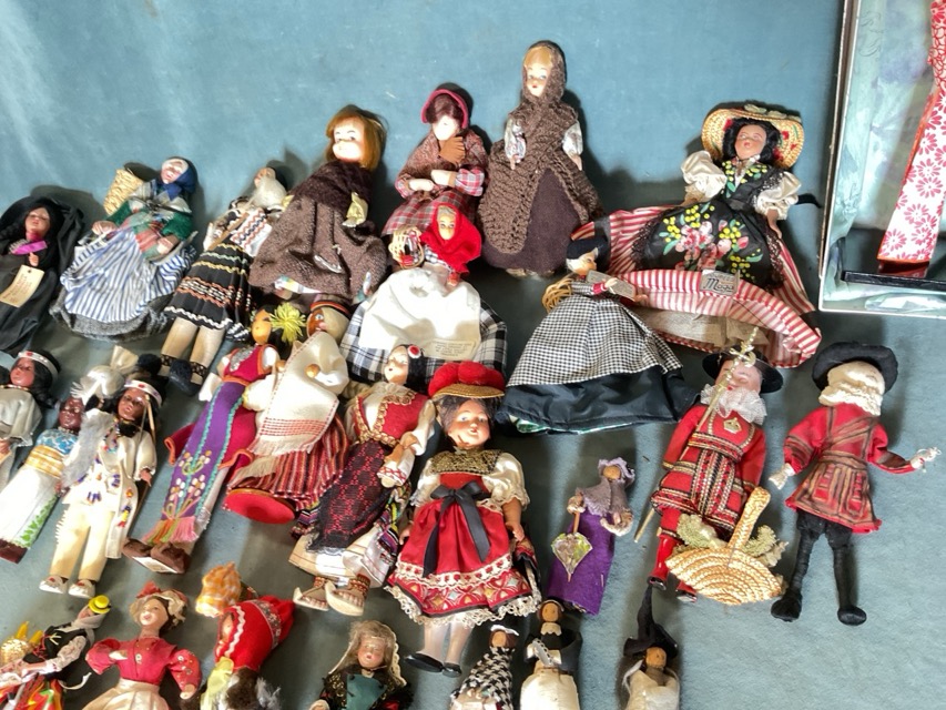 A collection of twenty-eight costume dolls - Beefeaters, Japanese, Bulgarian, Greek, Scottish, African, Maltese, German, Native North American, etc. (28)