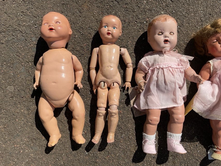 Five baby dolls - Armand Marseille with sleep eyes and jointed limbs, unmarked with articulated limbs, a 40s Pedigree, a French doll by Henri Pintel & Ernest Godchaux, a German boy doll, and a 1917 English painted bisque doll by S Hancock & Sons. (6)