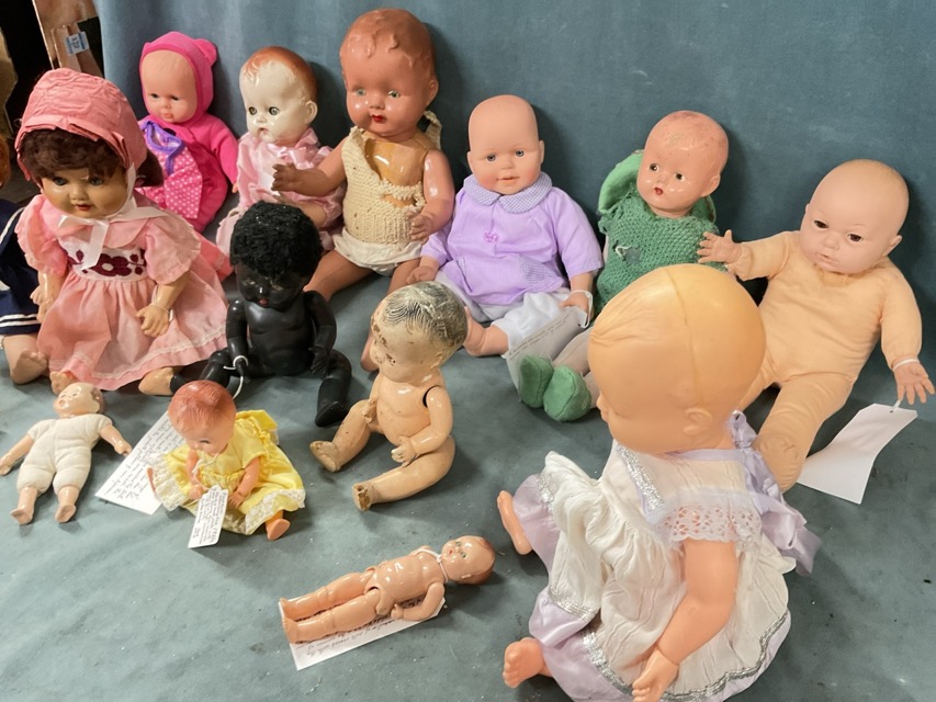 A collection of composition, porcelain & celluloid, baby dolls - Hancock & Son, Rosebud, Pedigree, Kader, Promenade Collection, Simba for Disney, Cititoy, Uneeda Doll Co., a 40s miniature walking Roddy doll, etc. (15)