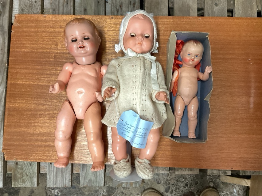 Miscellaneous babydolls - a Pedigree Beauty skin delite having composition head & latex rubber limbs stuffed with kapok, Armand Marseille bisque with porcelain head & cloth body, composition, sculpted hair, mama boxes, nylon lashes, sleep eyes, jointed limbs, etc. (18)
