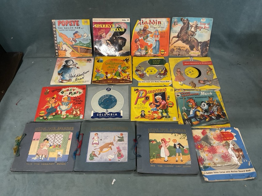 A collection of childrens videos - a limited edition boxed set of the Wizard of Oz with replica script and studio stills, Scooby-Doo, Andy Pandy, audio book tapes and CDs, various 30s-70s 7in records of songs and stories, etc. (A lot)