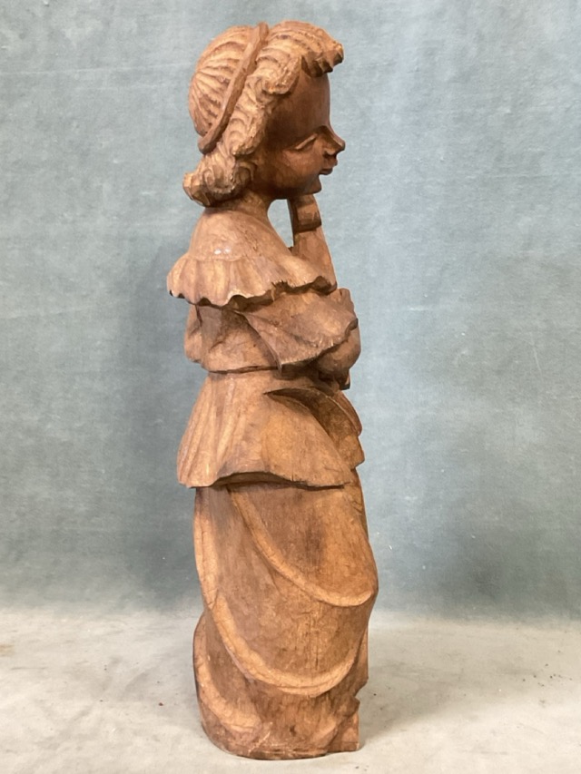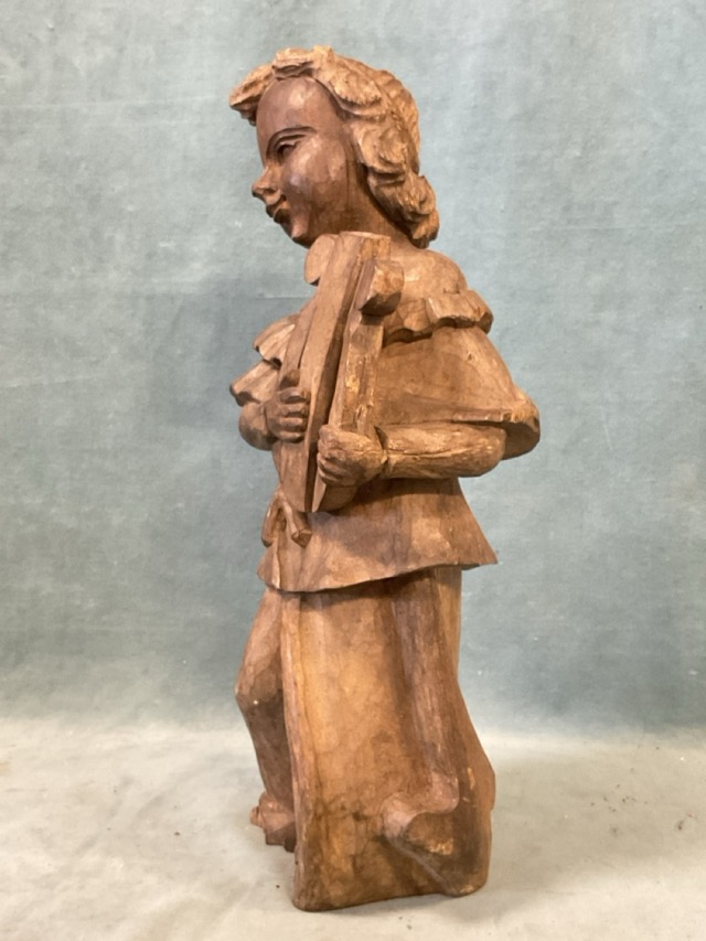 A carved hardwood figure of an angel with harp. (18.25in)