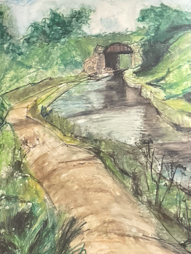 Laura Ross, oil pastel, canal landscape, signed, mounted & framed. (15.25in x 19in)