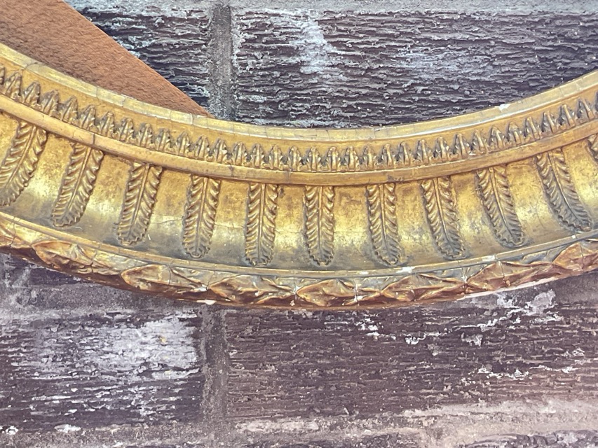 A Georgian circular gilt & gesso picture or mirror frame with acanthus and stiff leaf decoration with laurel mouldings. (29.5in x 29.5in)