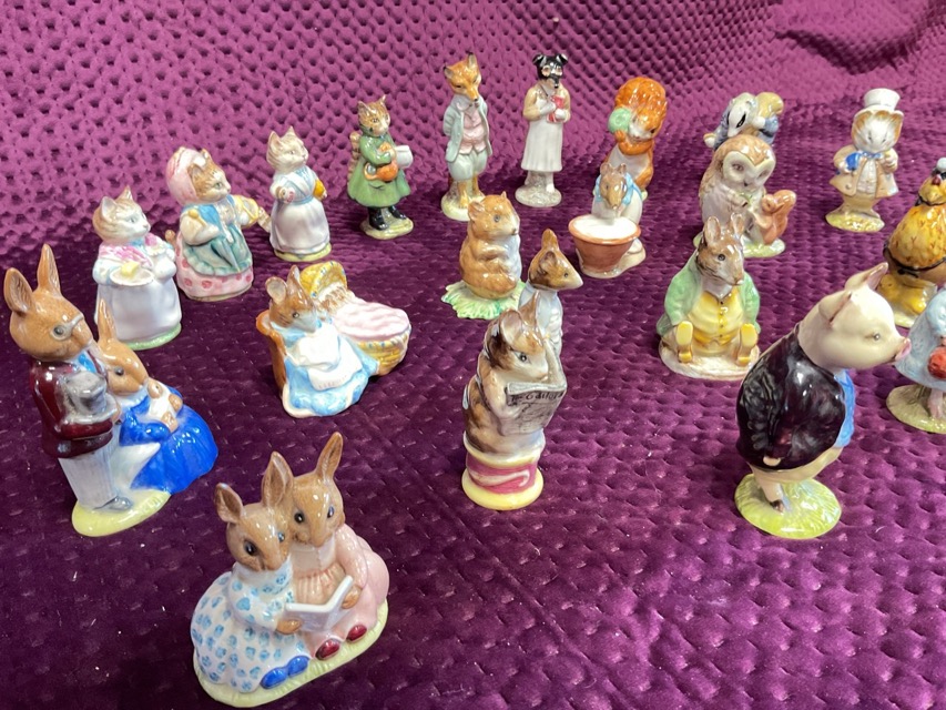 A collection of 22 Beatrix Potter figurines by Beswick with Warne & Co Ltd copywright marks - dated from 48 to 70s; and two Royal Doulton Bunnykins figures. (24)