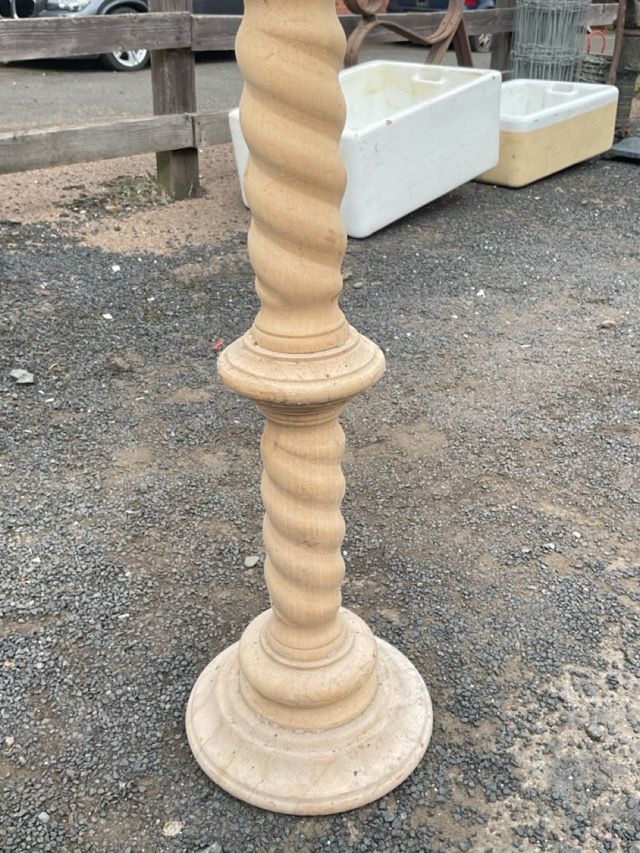 A hardwood jardiniere stand with tiered twisted turned column supporting a platform, above circular moulded base. (40in)