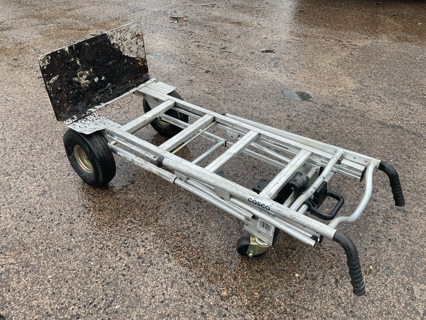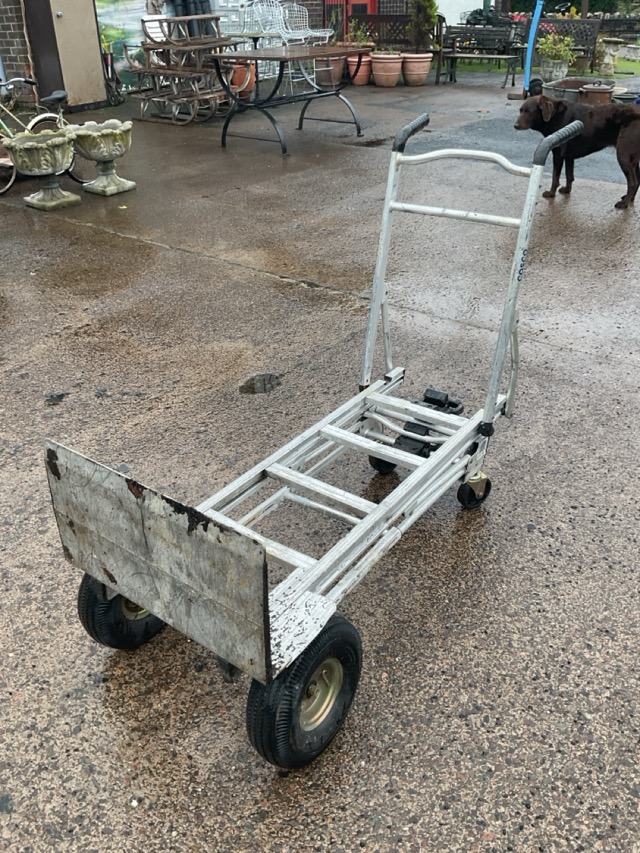 A Cosco aluminium sack barrow, converting to a trolley or barrow, with wheelbarrow type handles.