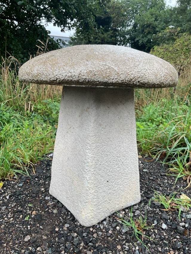 A mushroom shaped garden staddle stone with roughcast finish, the mound supported on square tapering base. (18.5in x 19in)