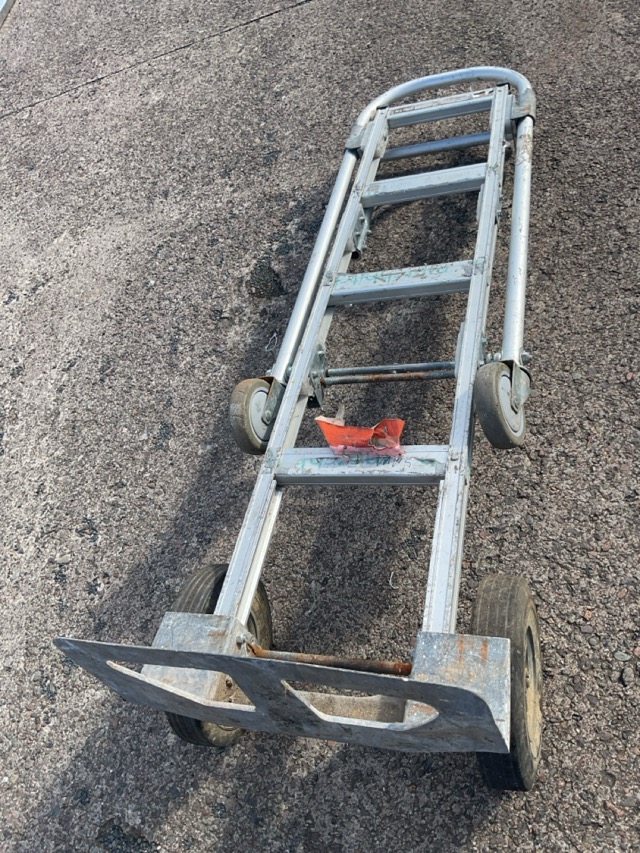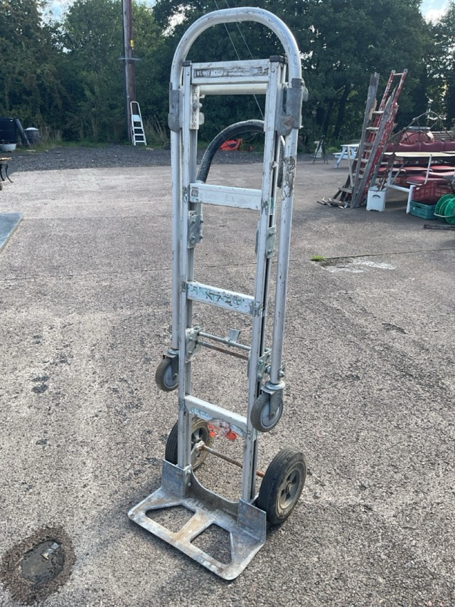 A Uline covertabIe hand truck, the sack barrow forming a trolley on four wheels.