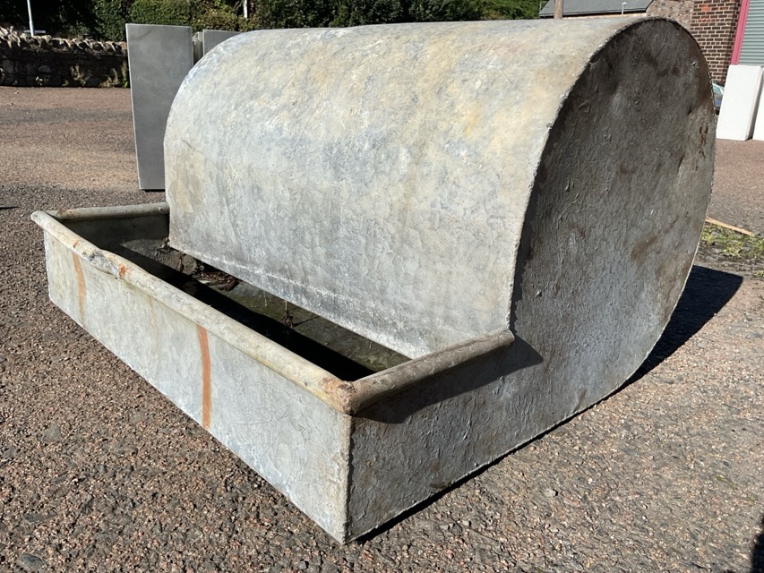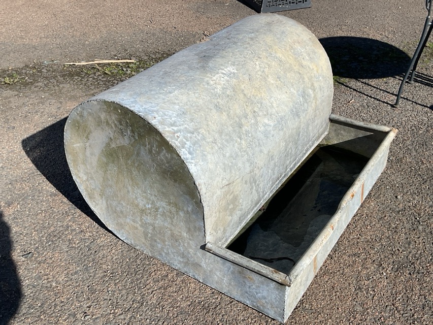 An unusual rectangular galvanised trough with tubular rim and domed cover. (36.75in x 32.5in x 22in)