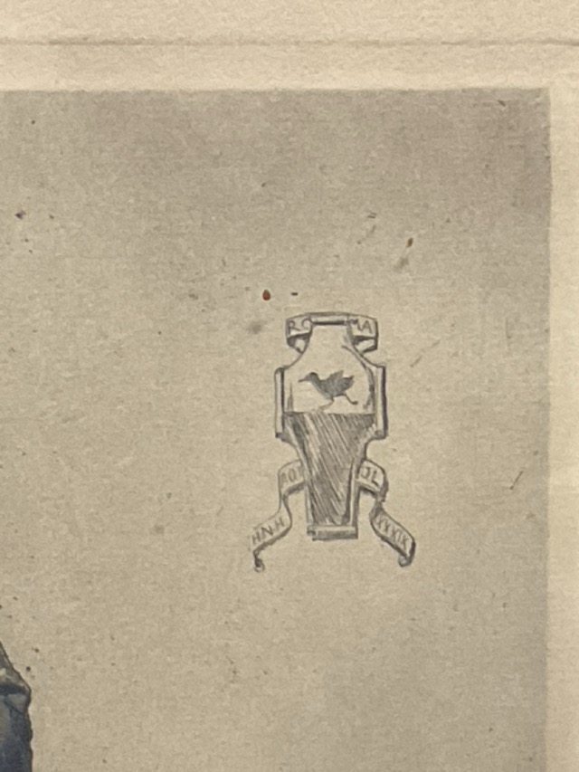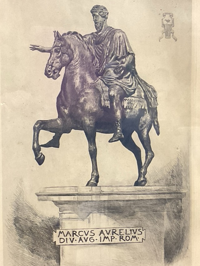 Hans Nicolaj Hansen, etching, the statue of Emperor Marcus Aurelius in Rome, signed with armorial cartouche in the plate, mounted and framed. (10.5in x 15.5in)