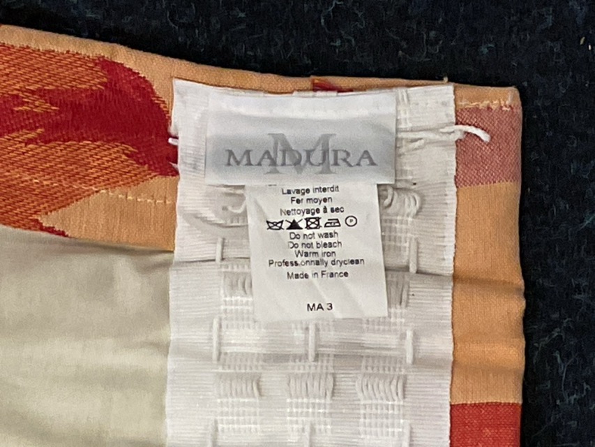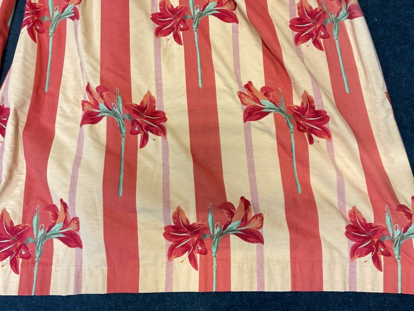 A pair of heavy lined cotton curtains by Madura with woven stripes and amaryllis flowers; and a similar narrower pair. (83in) (4)