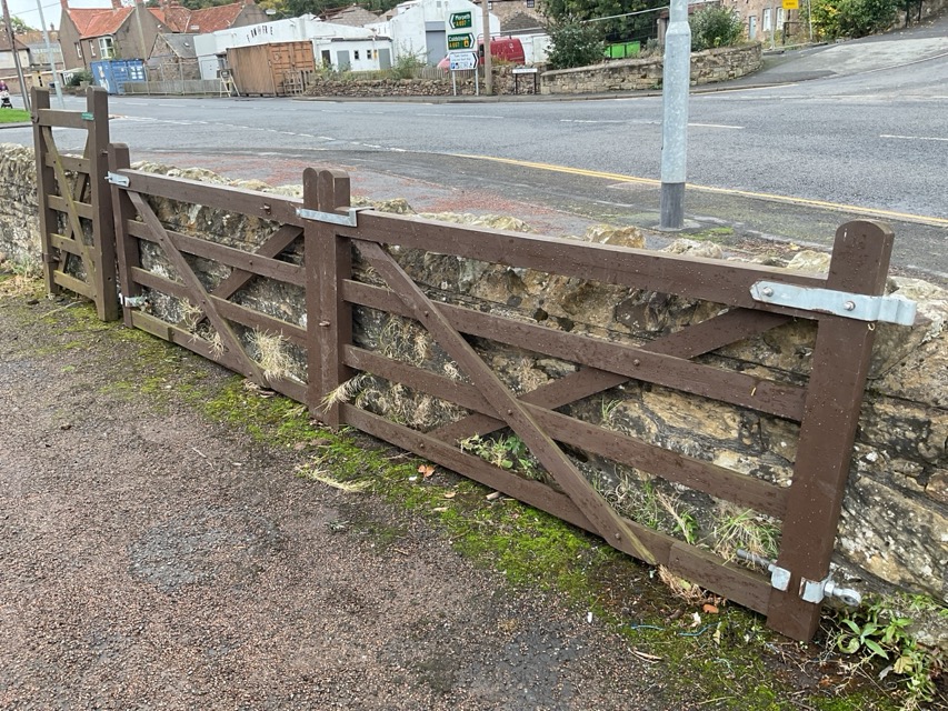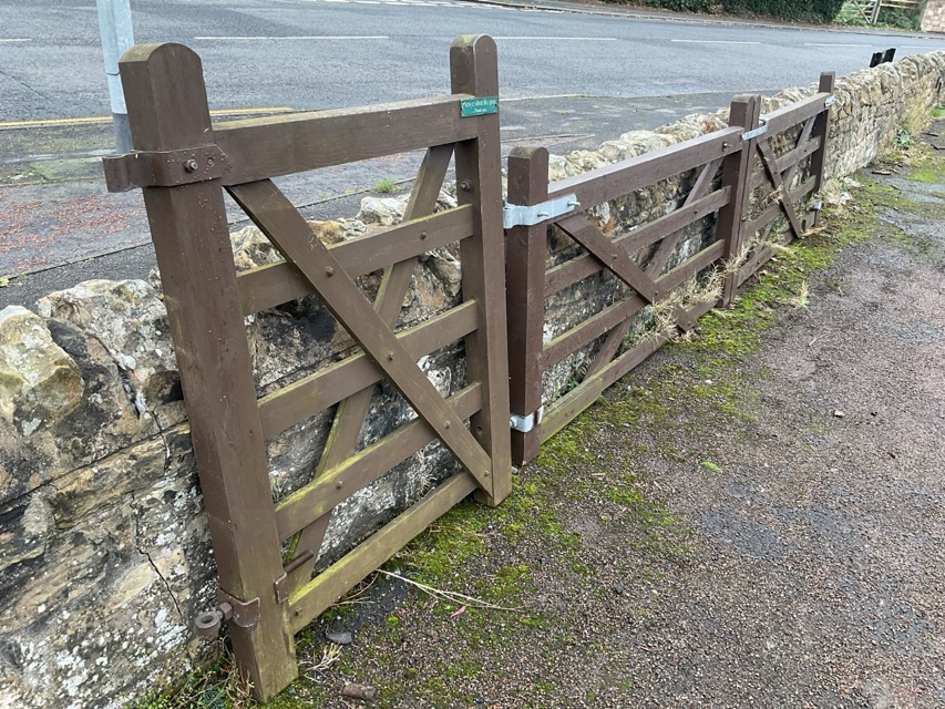 A pair of 6ft wood driveway gates of traditional construction having galvanised hinges & fittings - 12ft span; and an associated 3ft five bar side gate. (3)