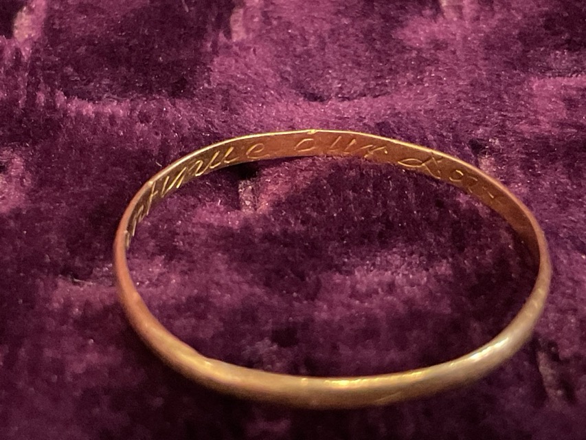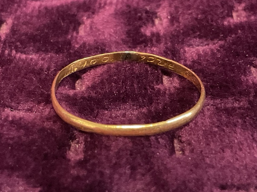 An C18th gold posy ring, inscribed inside with ‘God Above Continue Our Love’ - size S. (0.5g)