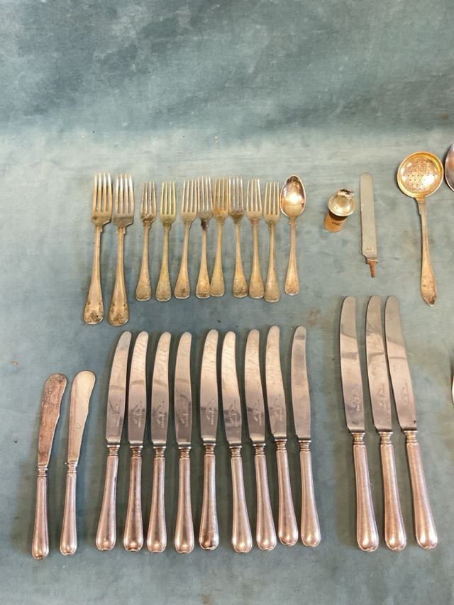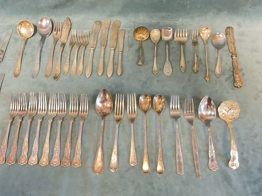 Miscellaneous mainly Swedish silver plated cutlery - sets of dinner, dessert knives & forks, various serving items, sifter spoons, a sardine fork, etc. (A lot)