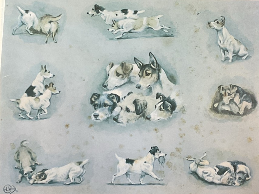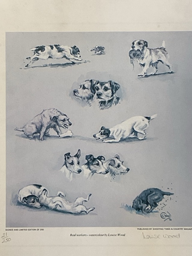 Louise Wood, limited edition coloured prints, a study of terriers, and another titled Real Workers, each signed, numbered and framed. (2)