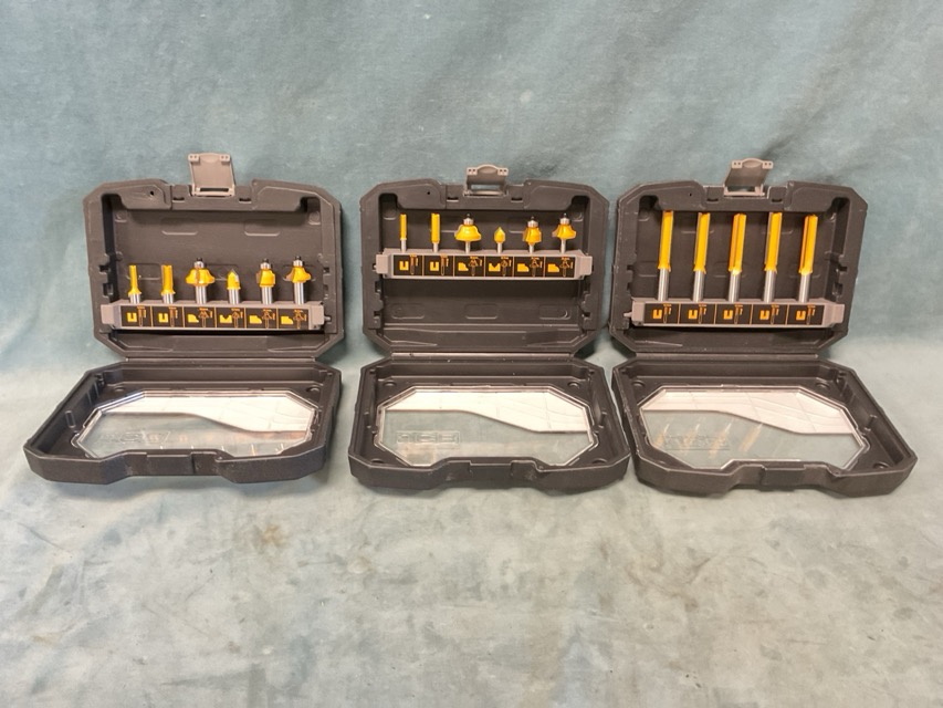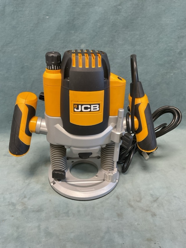 A JCB electric router with cases of bits, clamp, etc - looks unused.