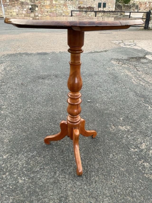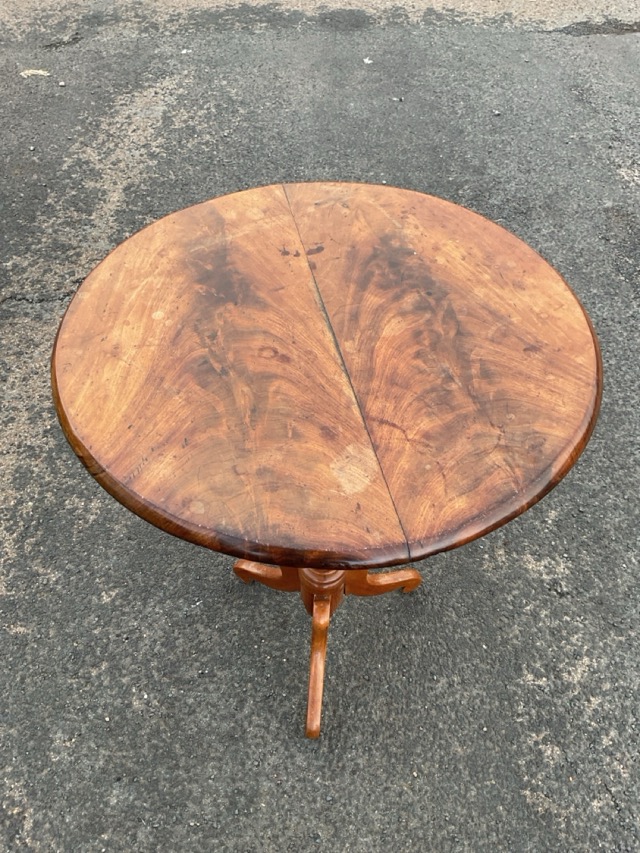 A circular nineteenth century mahogany occasional table supported on a turned column with tripod legs. (21.5in x 27in)
