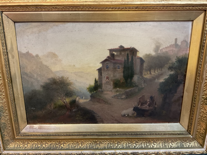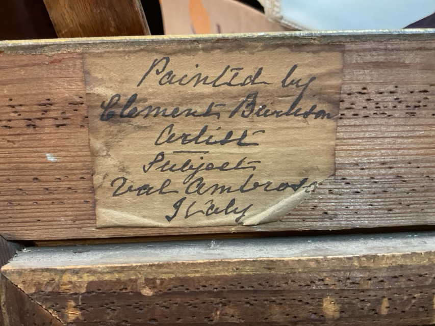 Clements Burlison, nineteenth century oil on board, Italian landscape with figures, unsigned, labelled to verso, framed. (17.5in x 11.25in)